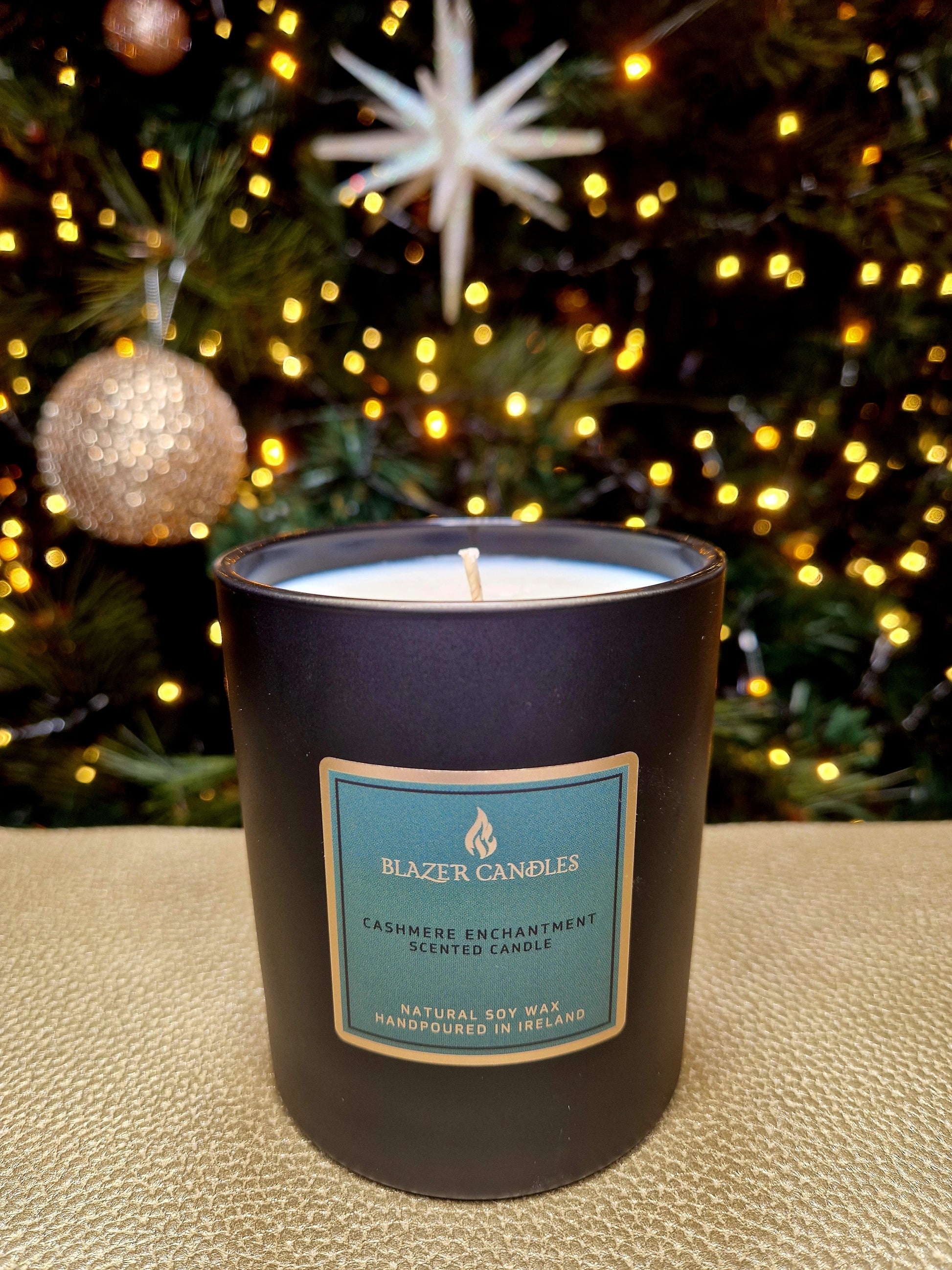 Indulge in the luxurious warmth of a Cashmere Enchantment scented candle. This exquisite blend combines the softness of Cashmere with delicate notes of Vanilla, sandalwood and a hint of Amber. This candle fills your space with cozy, soothing aroma, perfect for unwinding and creating an atmosphere of pure relaxation and elegance. Light it to wrap yourself in comfort and serenity, as the gentle flicker of the flame complements it's enchanting scent.