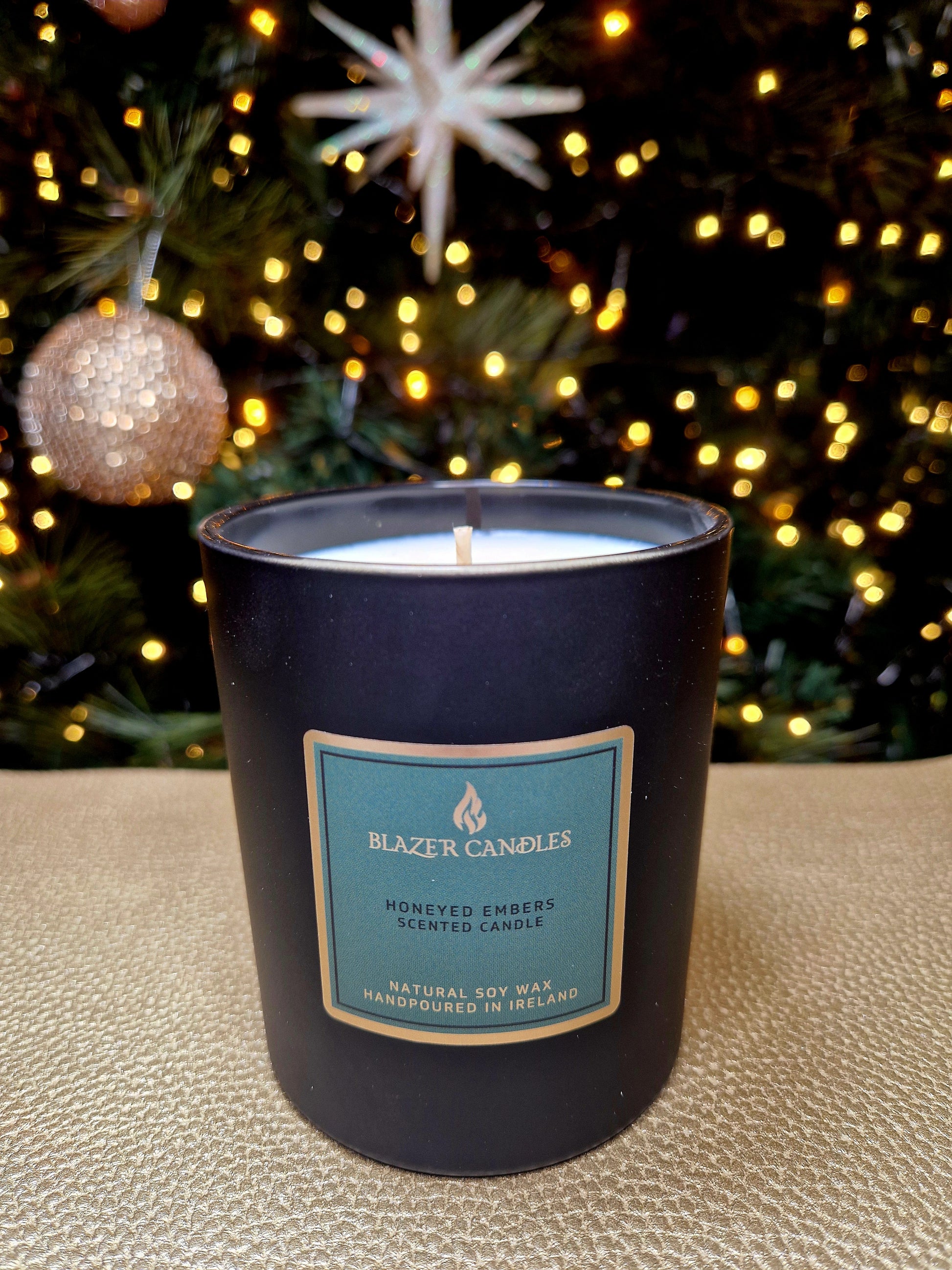Ignite the warmth of a cozy hearth with the Honeyed Embers scented candle. This captivating blend combines the smoky allure of glowing Embers with the sweet, golden richness of Honey. Notes of Amber and charred wood add depth, evoking memories of crackling fires and outdoor gatherings. Light it to fill your space with a warm, comforting glow, perfect for unwinding in serene rustic bliss.